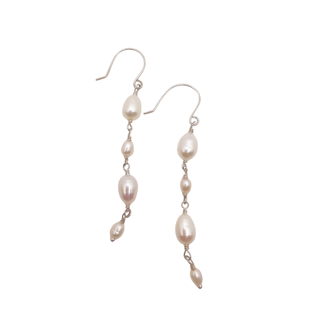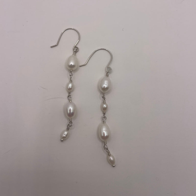 Alternating Oval and Rice Pearl Dangle Earrings