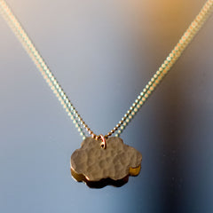 The 14 K gold-filled Cloud Charm necklace is hand sawed and dimpled for a shiny effect. The gold-filled ball chain is the perfect complement to this adorable piece. Wear a reminder that it's ok to dream a little.