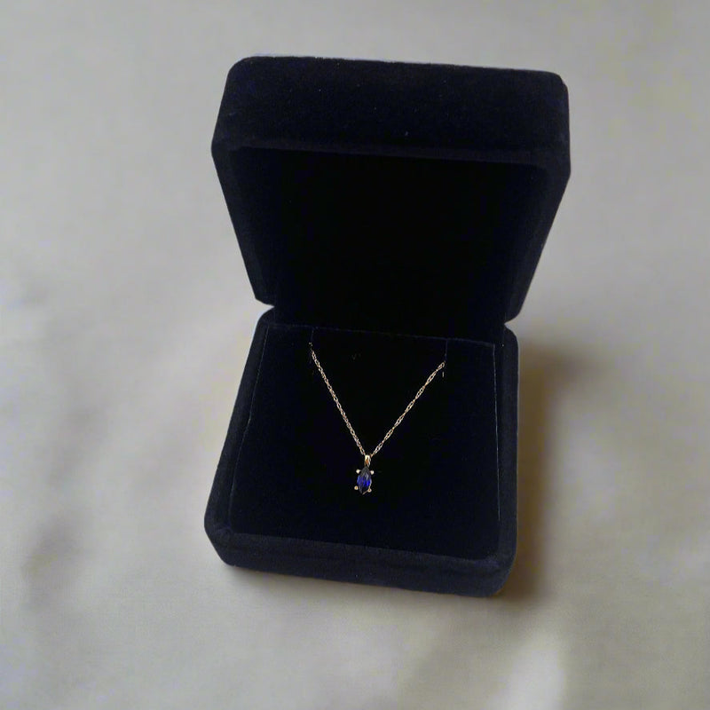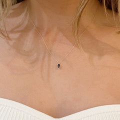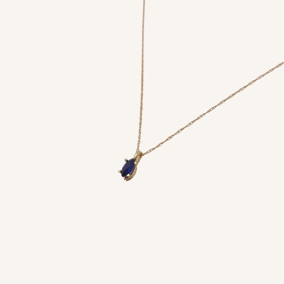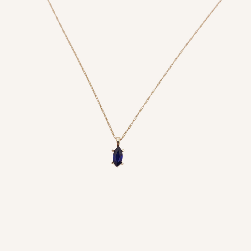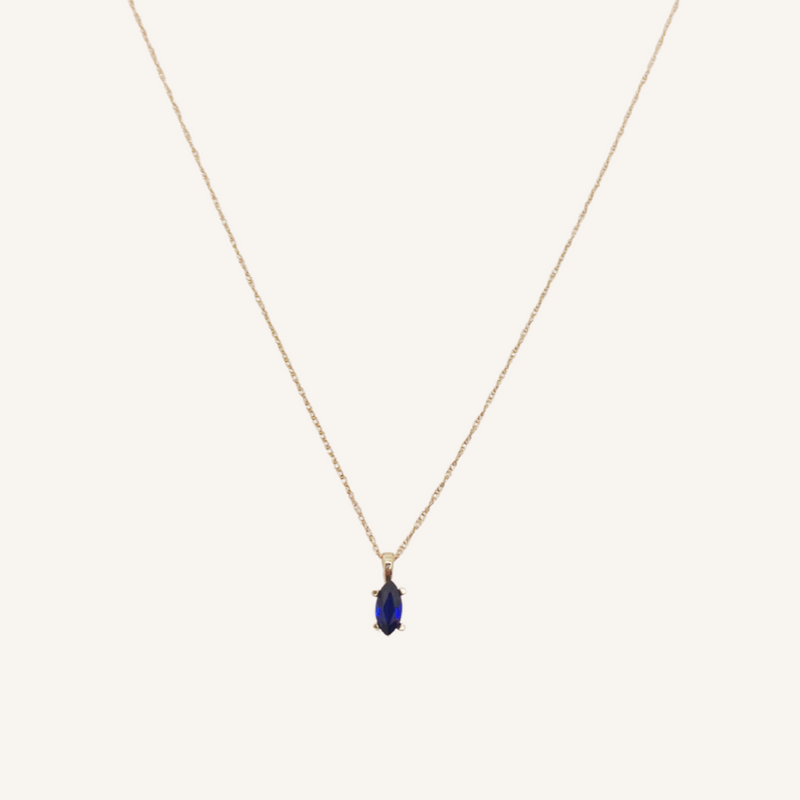 The Dainty Gold Marquise Sapphire Necklace is symbolic of loyalty, elegance, and individuality. It's the perfect dainty, subtle piece for those who love high quality pieces that are more understated.