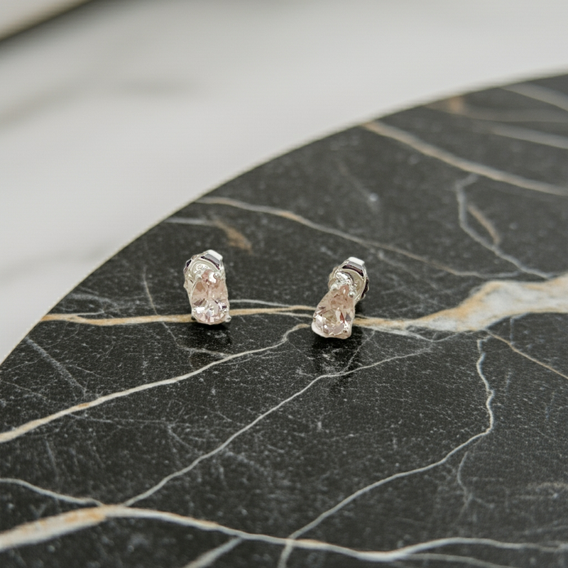 These light pink faceted pear shaped morganite earrings are the perfect sweet sparkle. Morganite is known to provide healing and compassion to those who wear them. These dainty and beautiful earrings are a nice reminder to have compassion for yourself.