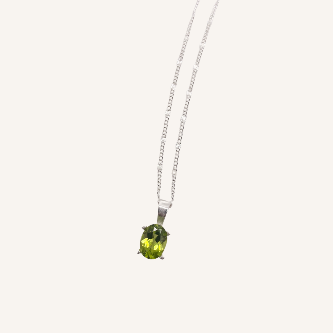 The Faceted Oval Peridot Necklace reminds you to realign with your inner truth and loyalty you have to yourself. Peridot is symbolic of suppressing the ego and jealousy allowing your inner natural goddess to shine! The gorgeous rich green color of this AA Grade Peridot is so lovely.