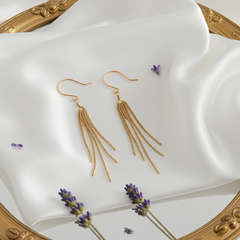 Earrings for those late summer get-togethers. These 14k gold-filled festive dangle earrings are your new go-to accessories.