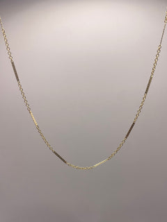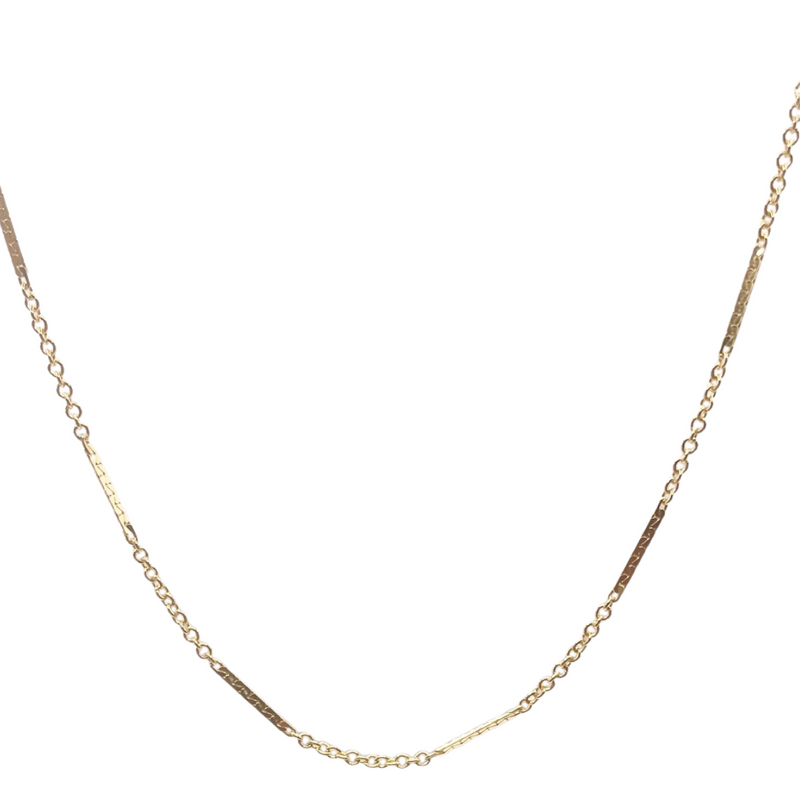 14k gold-filled dainty and minimal bar chain available in an 18" length. Great for stacking or wearing by itself.