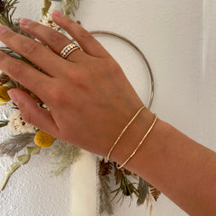 14K Gold-filled double band hammered adjustable bangle bracelet.