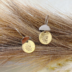 The Harvest Moon Earrings encompass the essence of this fall collection. After taking a poll on Instagram, Chezza Jewelry discovered its' customers wanted more celestial jewelry for Fall. You voted and I listened. These earrings feature a shining Moon and Star symbol and combine Sterling Silver and Gold-filled materials giving this piece a warm, unique feeling.
