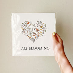 The "I AM BLOOMING" print was made in collaboration with watercolor artist, Karen McNeely, of KCM Studio Ink. After setting up next to each other at a local market in Carmel Valley weekend after weekend, I formed a personal, professional, and artistic appreciation for her designs. When I had the desire to create positive affirmation prints I knew that Karen's Botanical Heart design would make these pieces come to life.
