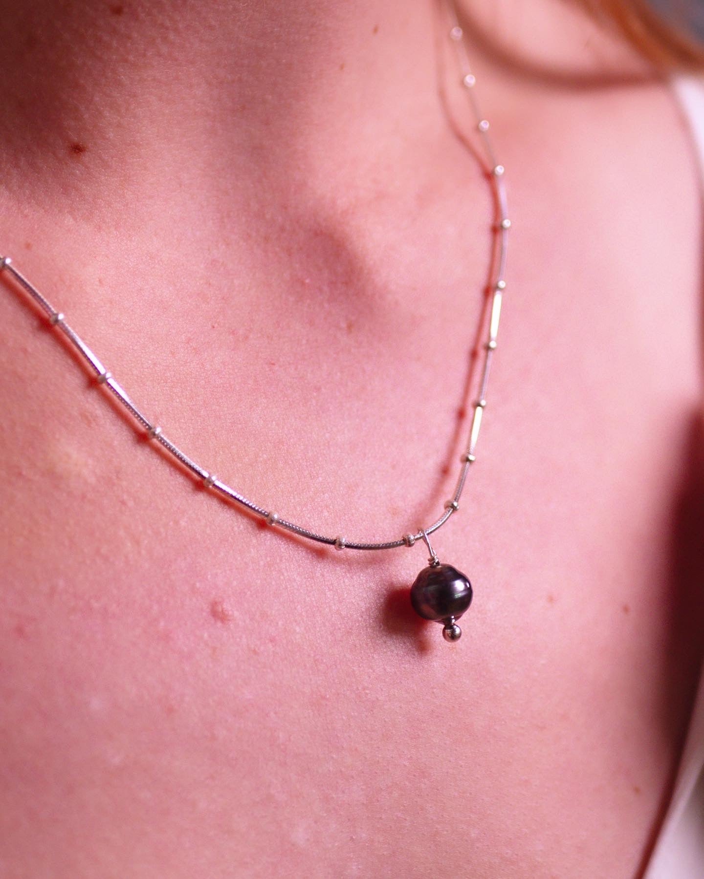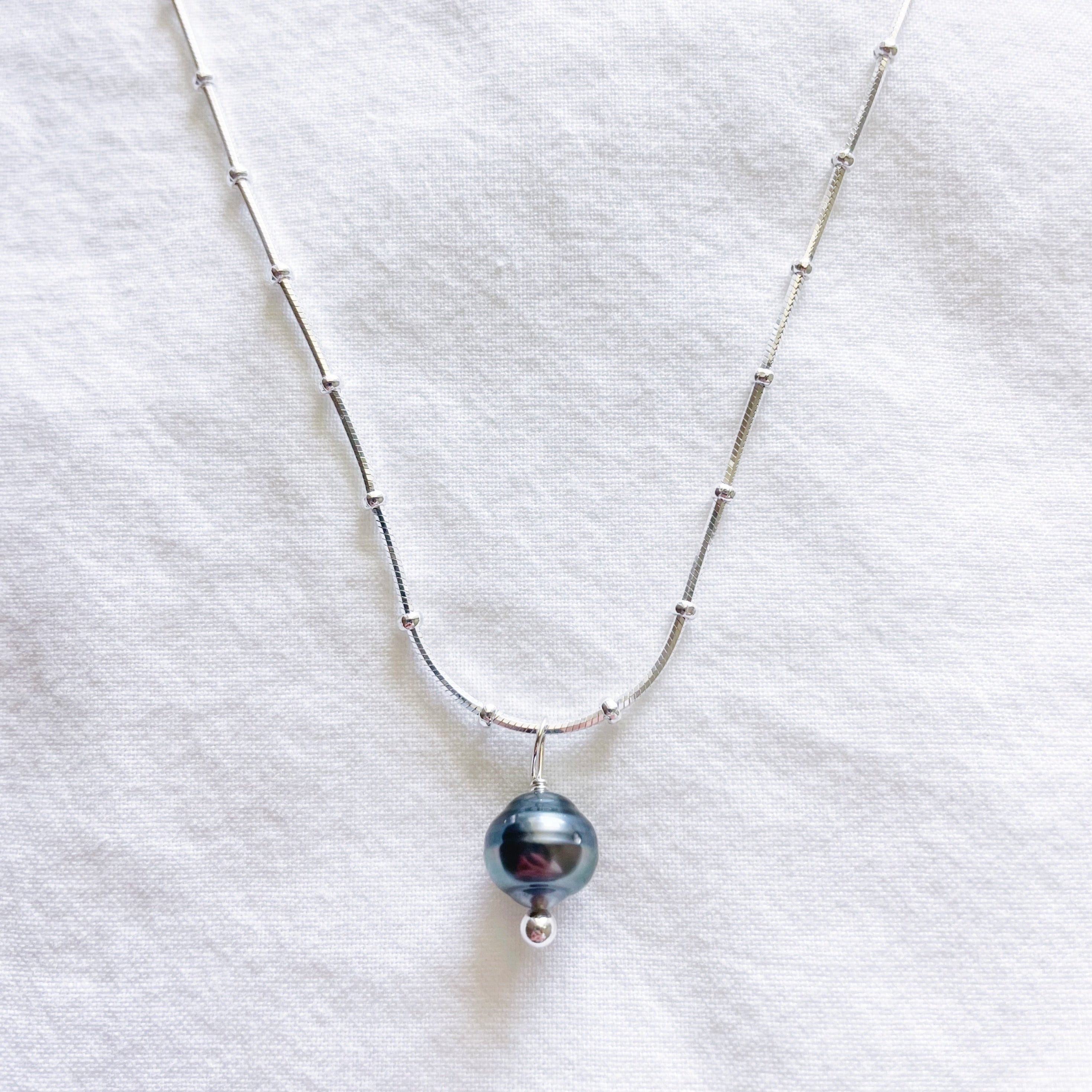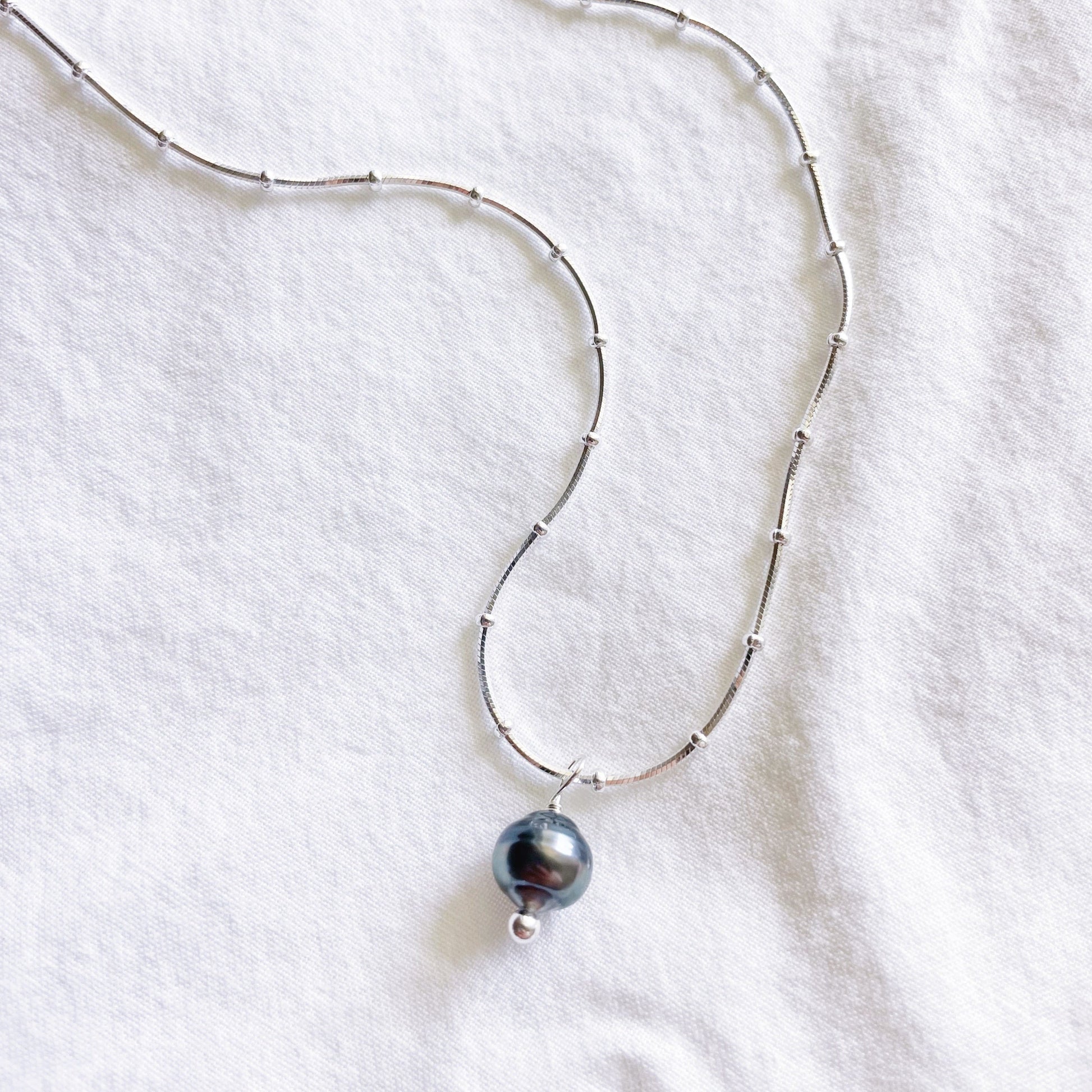 This Sterling Silver Tahitian Pearl Necklace is the perfect accessory for a sophisticated look. This piece will make a subtle yet distinguished addition to any outfit.